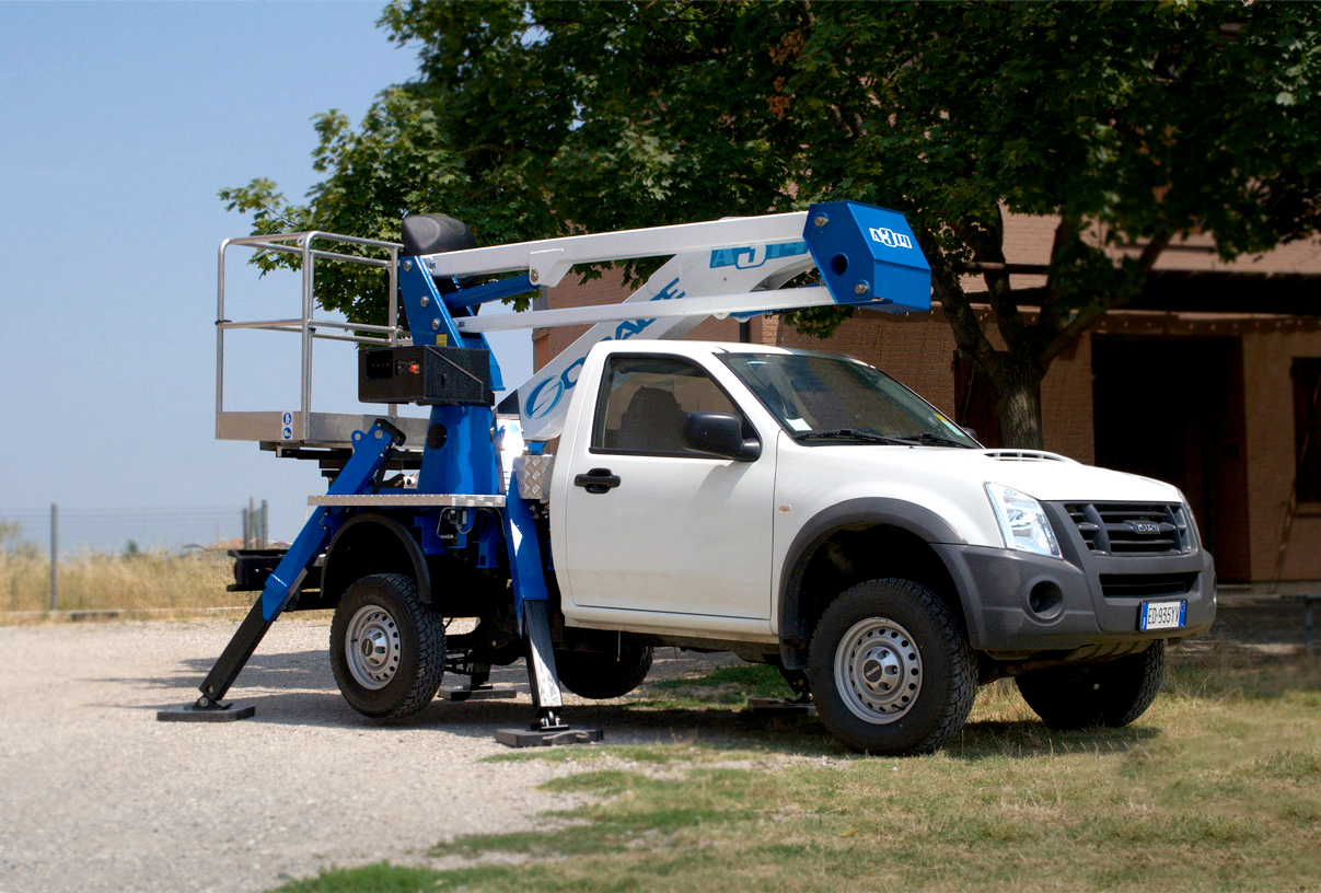 La Socage 12A es una plataforma aérea articulada compacta con una altura de trabajo de 12 metros y un alcance lateral de aproximadamente 5 metros. Diseñada para trabajos en espacios reducidos, se monta sobre vehículos ligeros, lo que facilita su transporte y maniobrabilidad en entornos urbanos.