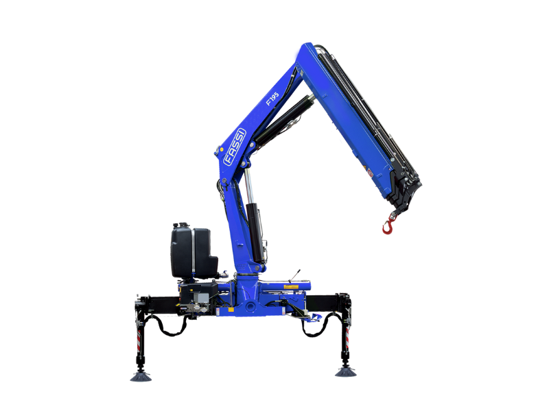 Brazo grúa Fassi de alto rendimiento y dinámica con cuatro extensiones hidráulicas con base de acero fundido para máxima estabilidad, ideal para camiones de dos a tres ejes o con un PVB de 17 Ton en adelante.