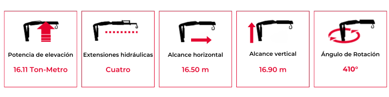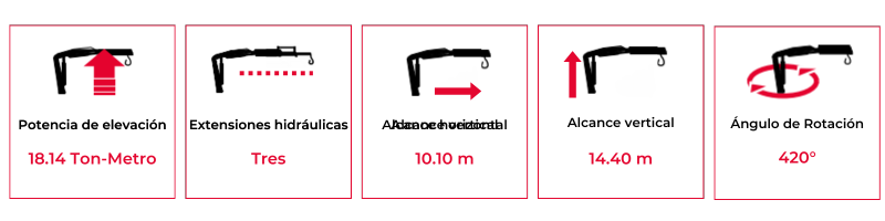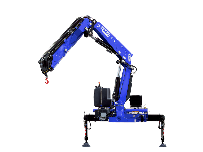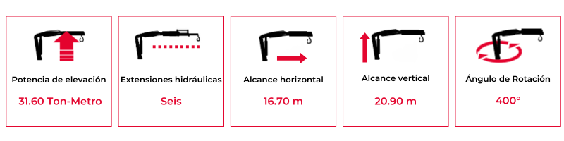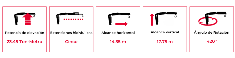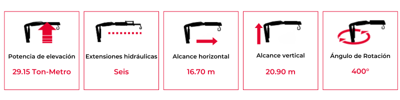 Brazo grúa Fassi con dotación electrónica/hidráulica cuenta con doble biela y seis extensiones hidráulicas, ideal para camiones de dos a tres ejes o con un PVB de 20 Ton en adelante.